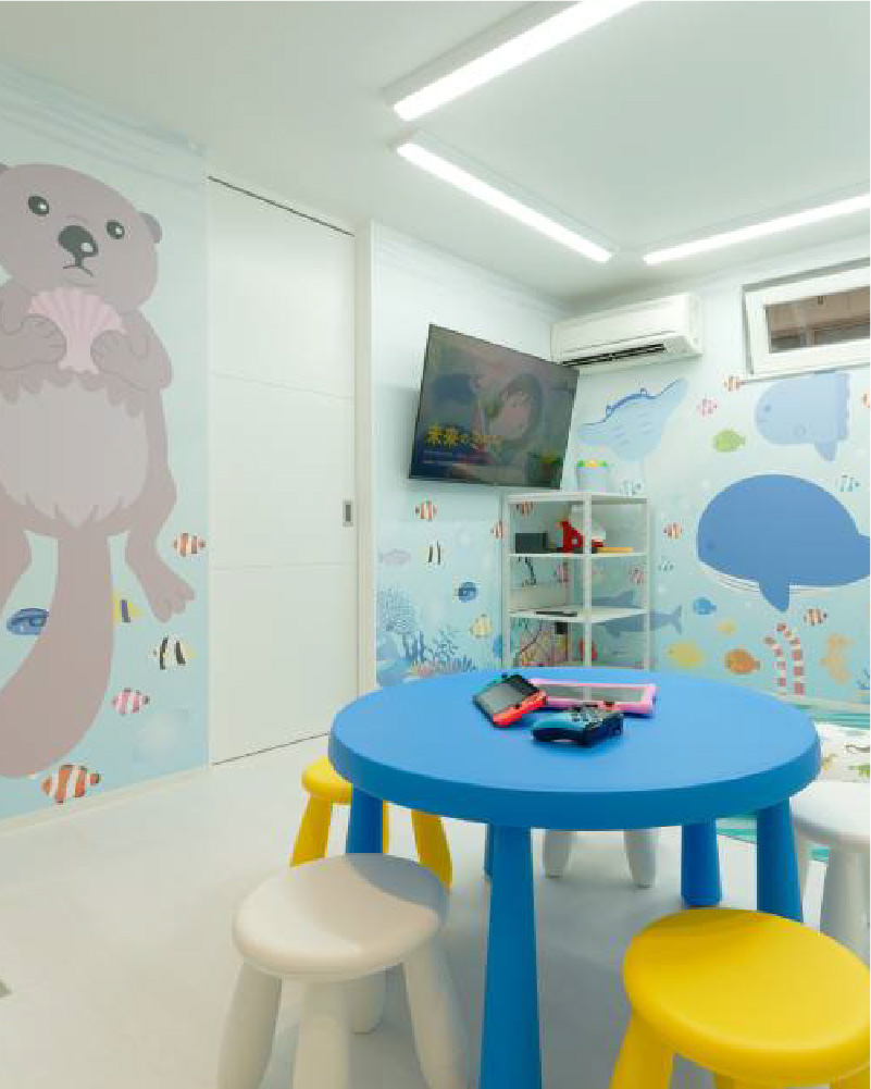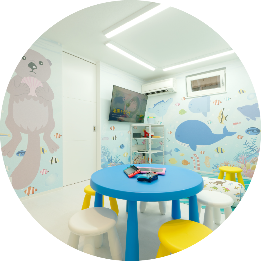 キッズスペースもあり、親子で通いやすい環境です。幼いころからの予防習慣で未来のお口の健康は決まります。成長に合わせた「予防」ケアから小児矯正治療まで、総合的な視点でお子さまのお口の健康を守ります。