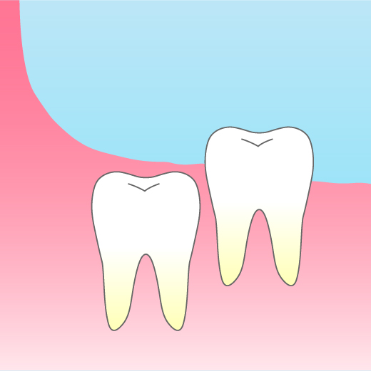 親知らずが完全に出ていない場合は、歯ぐきを切開します。切開は必要最低限にとどめ、抜歯後の炎症を抑えるための工夫を行っています。切開せずに抜歯することもあります。